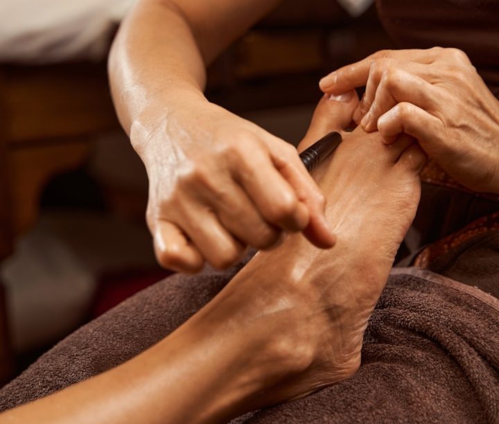 Die Fuß- und Beinmassage ist eine wohltuende Behandlung, die nicht nur zur Entspannung beiträgt, sondern auch die Durchblutung fördert und Verspannungen löst. Durch gezielte Techniken werden Stress und Anspannung abgebaut, während sowohl die Füße als auch die Beine eine tiefgehende Erholung erfahren. Diese Art der Massage ist ideal für Menschen, die viel stehen oder laufen, und kann helfen, Müdigkeit und Schwellungen zu reduzieren. Zudem wird das allgemeine Wohlbefinden gesteigert und die Fuß- und Beinmuskulatur gestärkt. Eine regelmäßige Fuß- und Beinmassage kann somit ein wertvoller Bestandteil eines gesunden Lebensstils sein.
